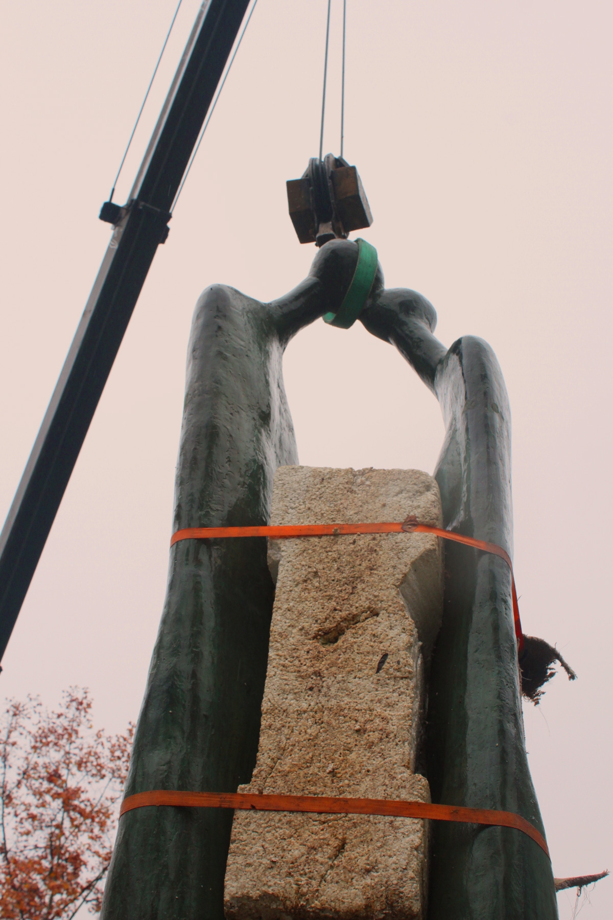 El traslado de la obra desde el taller del escultor en Peñalolén hasta Providencia  se realizó el fin de semana ante la atenta mirada del propio Irarrázabal y el director ejecutivo de la Fundación Manuel Ahumada.