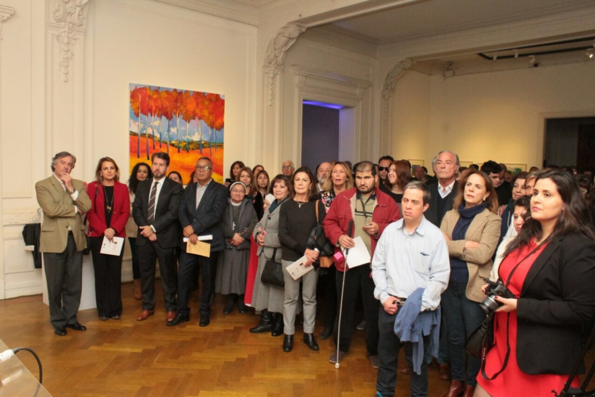 “Travesía hacia la luz” se denomina la exposición de pintura y escultura realizada por 12 personas ciegas que se puede visitar hasta el viernes 3 de noviembre en la Fundación. La muestra fue inaugurada por el director ejecutivo de la Fundación, Manuel Ahumada, el integrante del directorio Jorge Andrés González, el presidente de la Corporación para Ciegos, Juan Manuel Gutiérrez y la directora ejecutiva de la Corporación para Ciegos, Javiera Acuña.