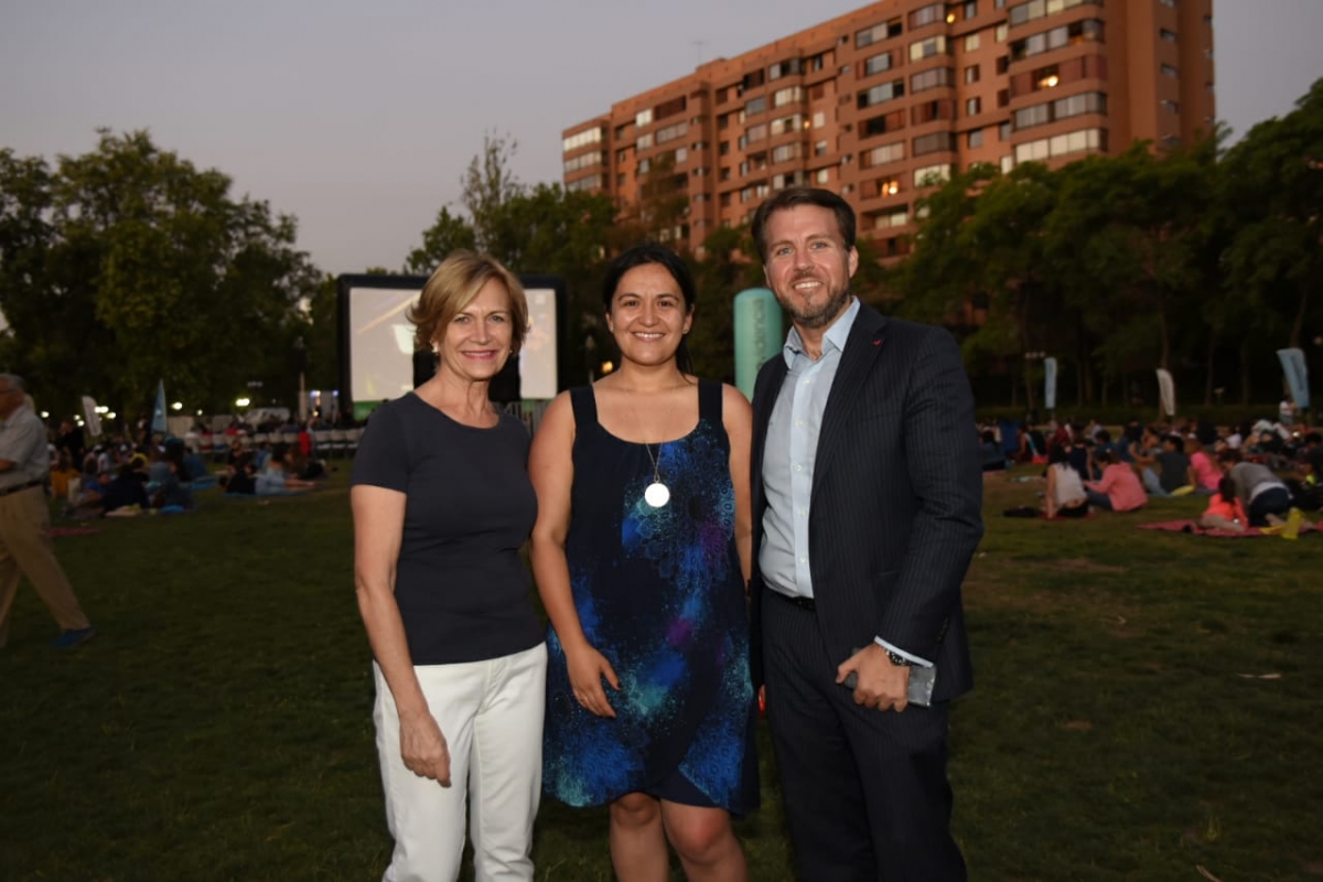 Entre los asistentes estuvieron la alcaldesa de Providencia, Evelyn Matthei y el director ejecutivo de la Fundación Cultural, Jorge Andrés González, quienes además fueron parte de la iniciativa “Cine Pedaleable”, donde los asistentes pueden pedalear en bicicletas estáticas para darle energía al sistema de audio del evento.
