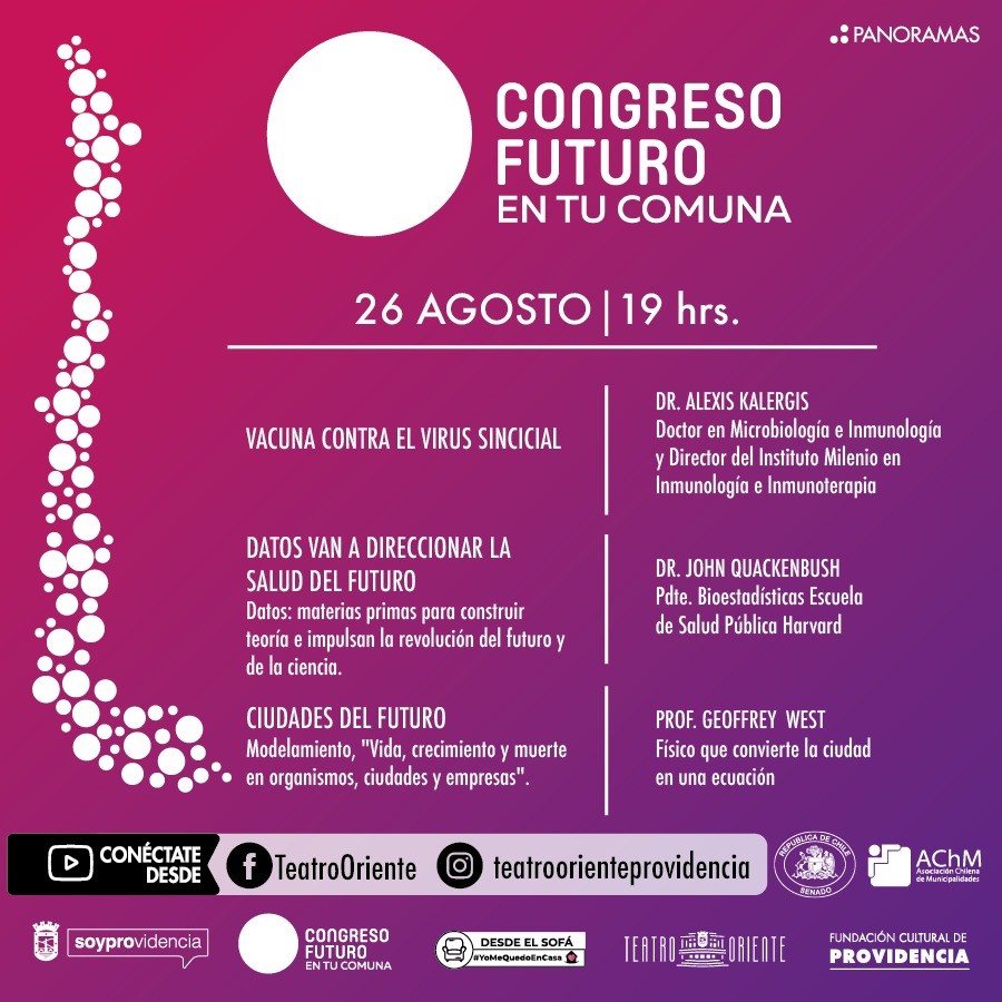 Desde el lunes 24 de agosto y hasta el 2 de diciembre, les compartiremos diferentes charlas realizadas en el Congreso Futuro realizado en el Teatro Oriente de Providencia.