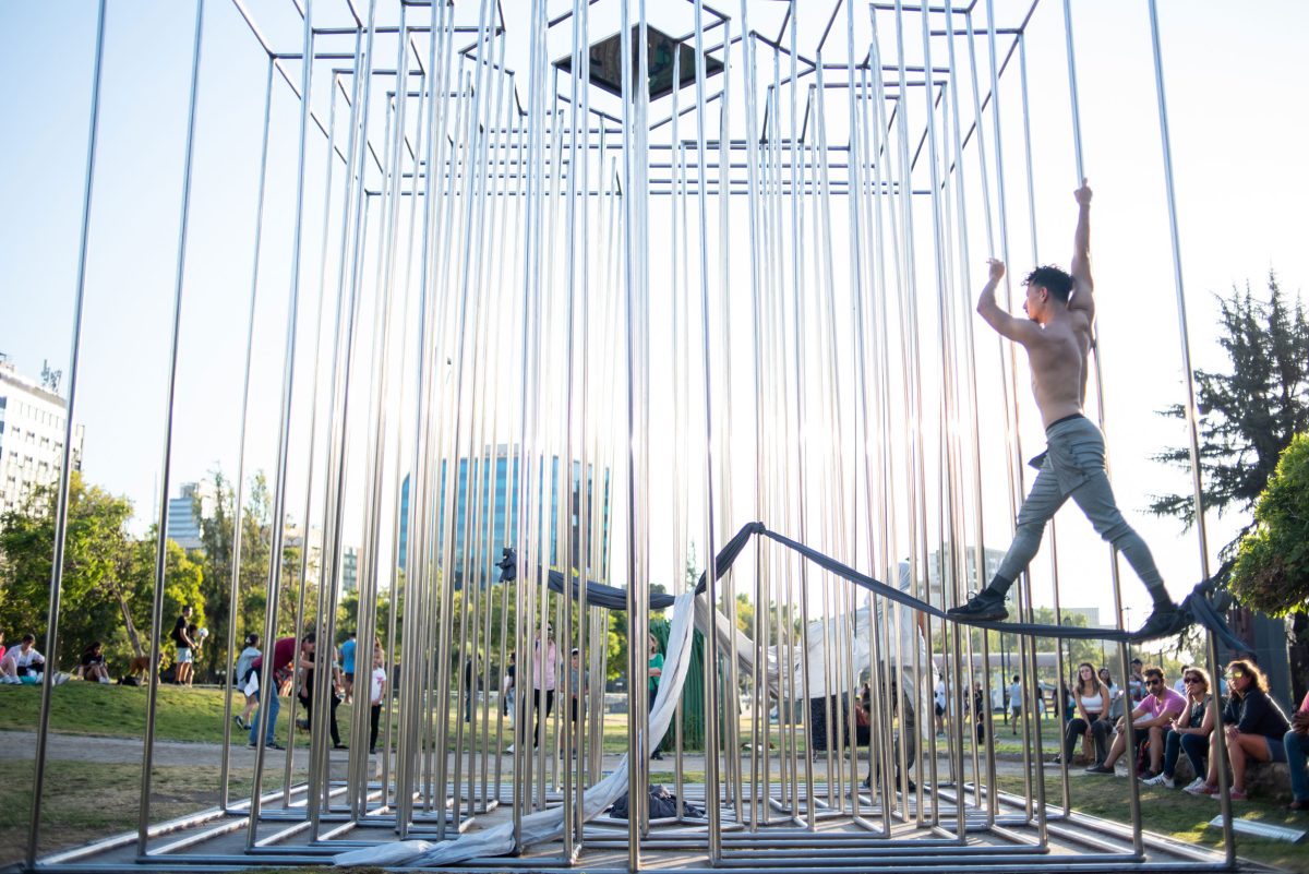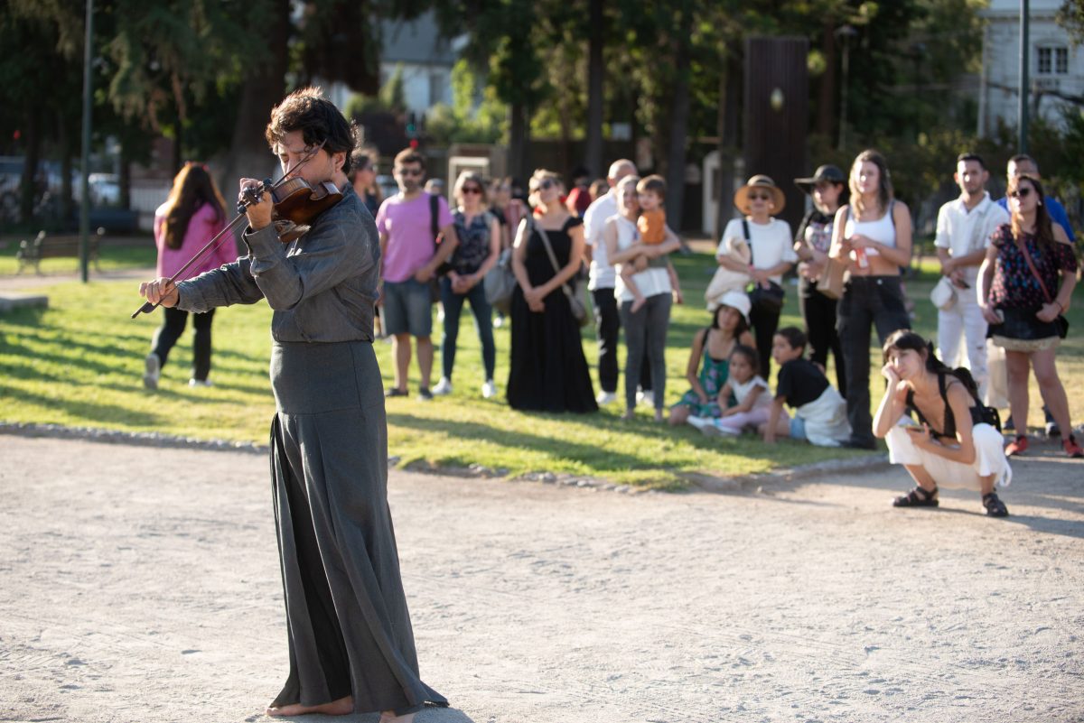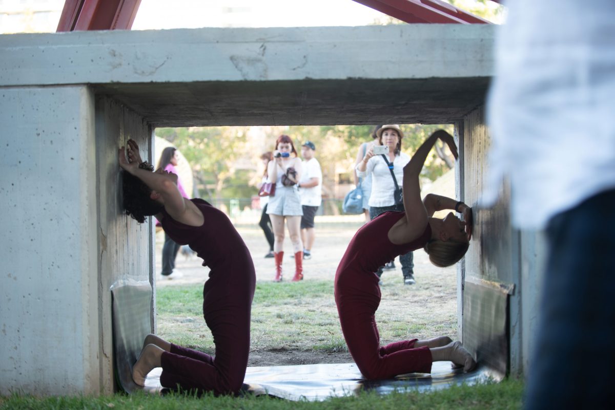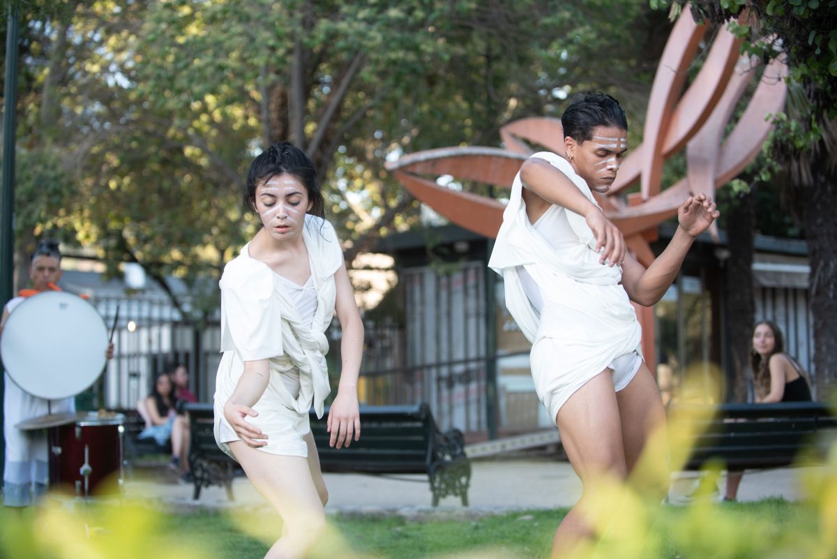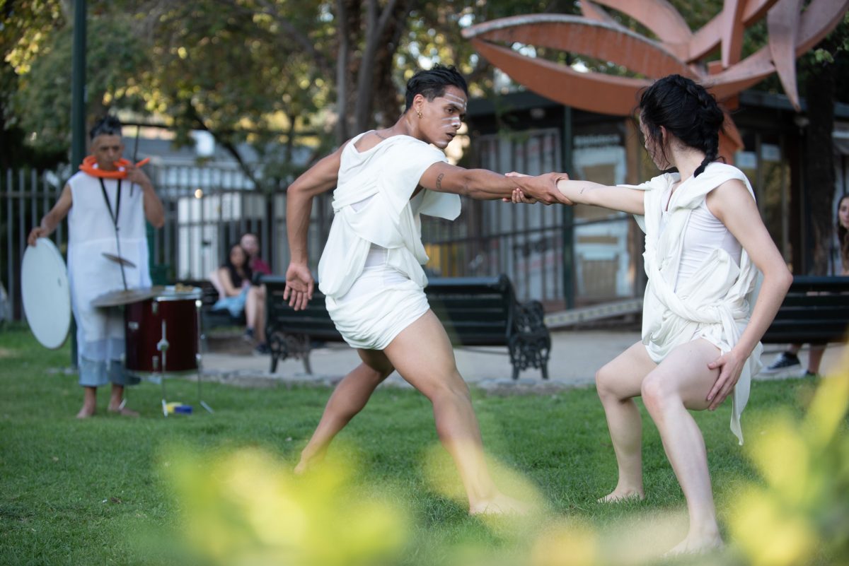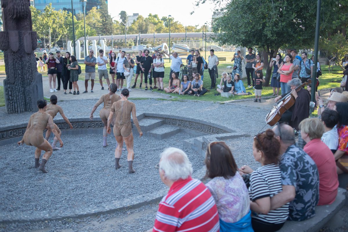 Se trata de la novedosa propuesta de Mathieu Guilhaumon director del Ballet Nacional Chileno (BANCH). La compañía, acompañada por músicos de la Orquesta Sinfónica Nacional de Chile se presentaron en torno a algunas de las obras escultóricas del parque.